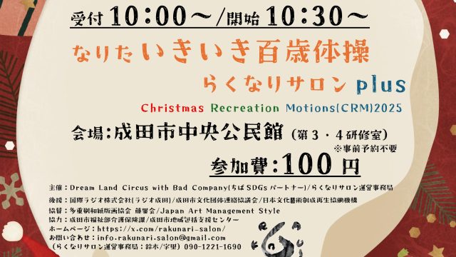 【募集日12/23】らくなりサロン なりたいきいき百歳体操+Christmas Recreation Motions(CRM)2025