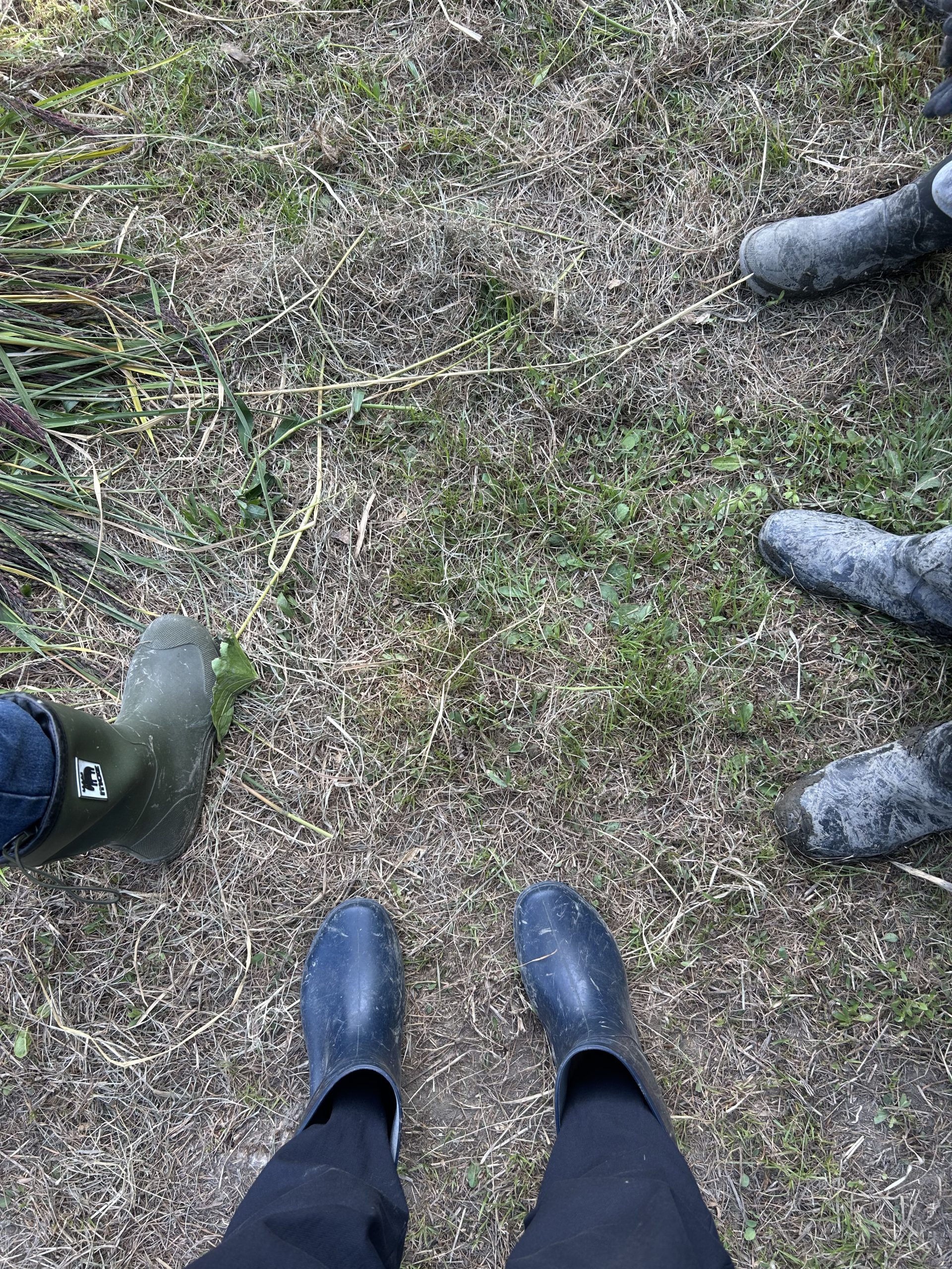 2時間後、稲はほとんど刈り終わりました。全部を干すには時間が足りませんでしたが、みなさんめいっぱい体を動かしていました!長靴の泥を洗い流して解散です。お疲れ様でした!