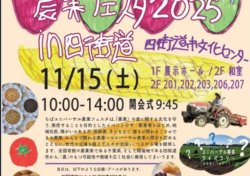「ちばユニバーサル農業フェスタ」は、農業や食文化を守り、みんなに伝えることを目的としたイベントです。 このフェスタでは、農業者だけでなく、地域の住民、障害のある方、高齢者、子どもなど、誰もが関われる“ユニバーサル農業”の考え方を広めていま…